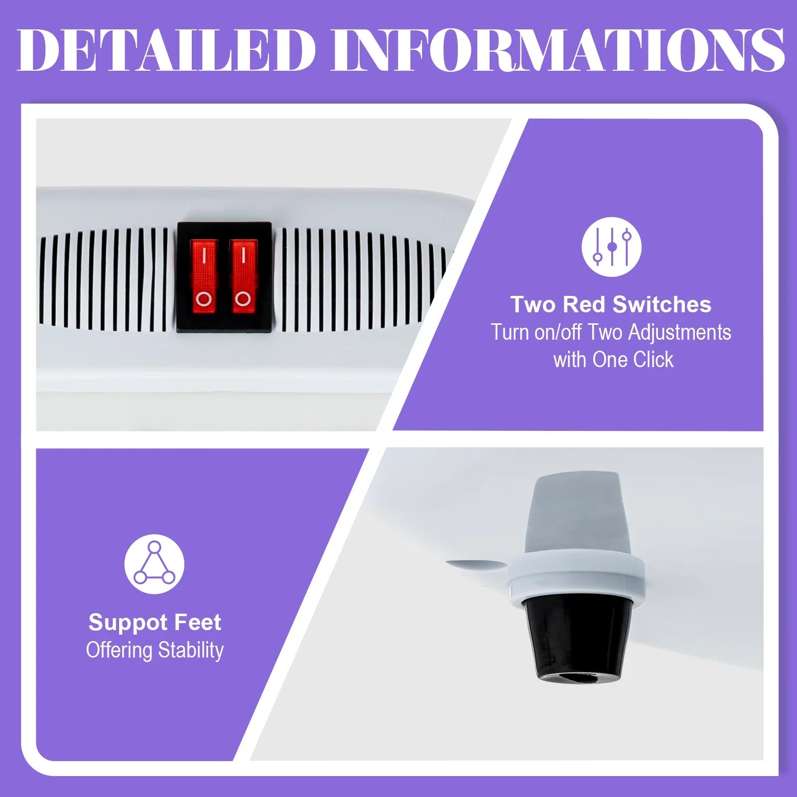 Two Red Switches: You can turn on/off it with one click when using/not using the mode selection knob and intensity adjustment knob, which is very convenient.