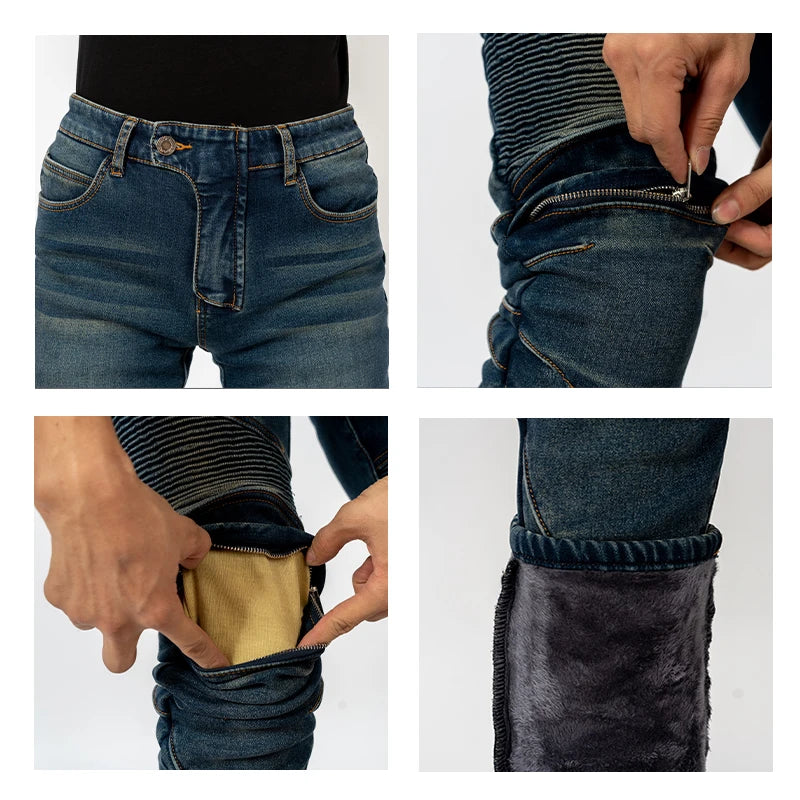 Men Winter Motorcycle Jeans Motocross Blue Pants Racing Protective Gear Rider Pants Anti-fall New Outdoor Riding Motos Trousers