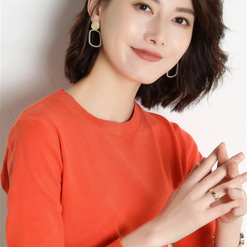 Autumn And Winter Cashmere Sweater Women's Crew Neck Pullover Casual Knitted Top Women's Short Undercoat Fashion 18 Colors