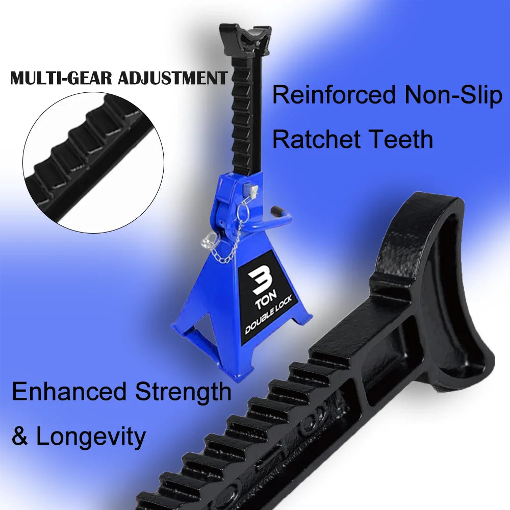 stable support to keep safety.Sturdy and Safe to Use: Double locking jack stands help support
